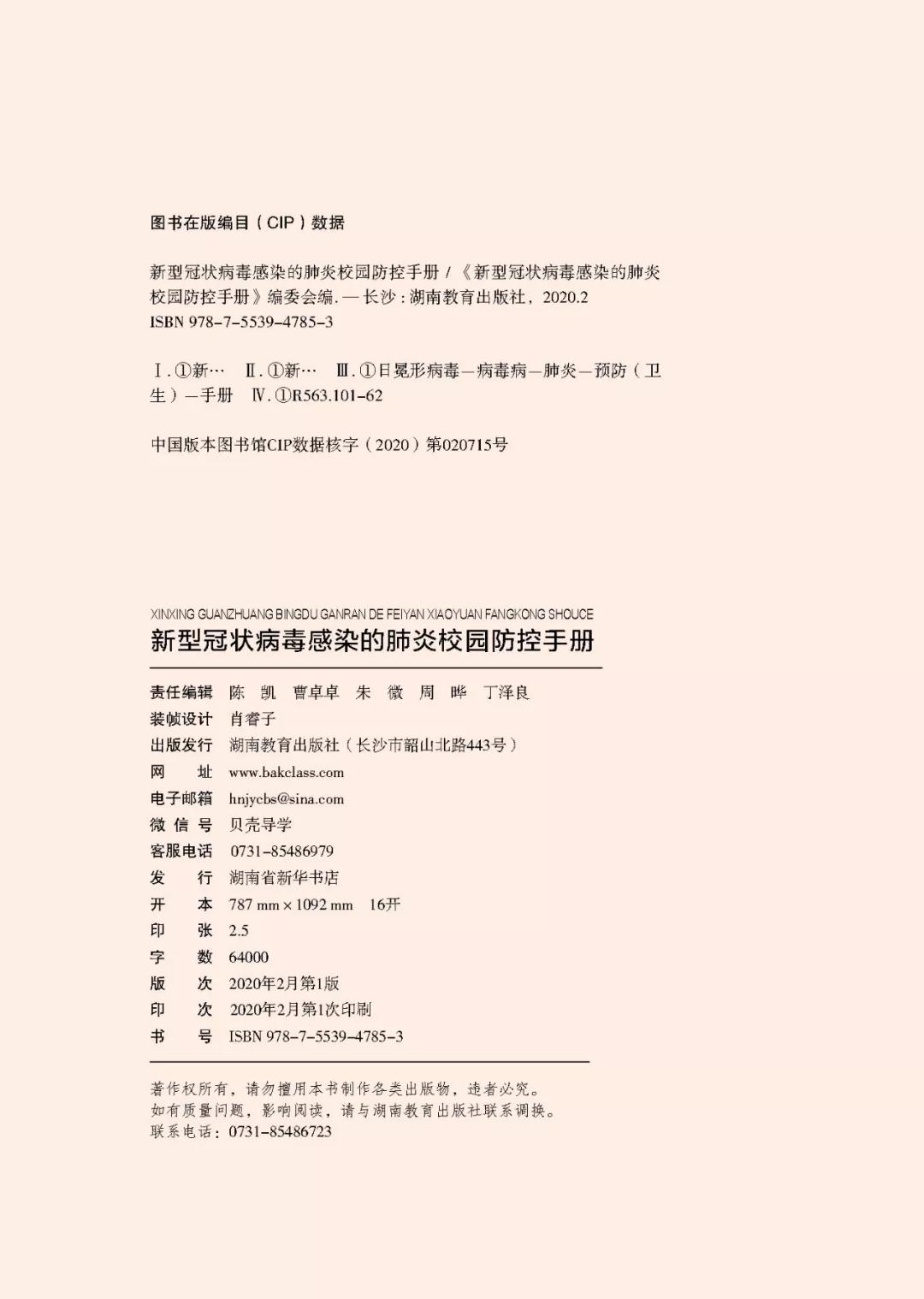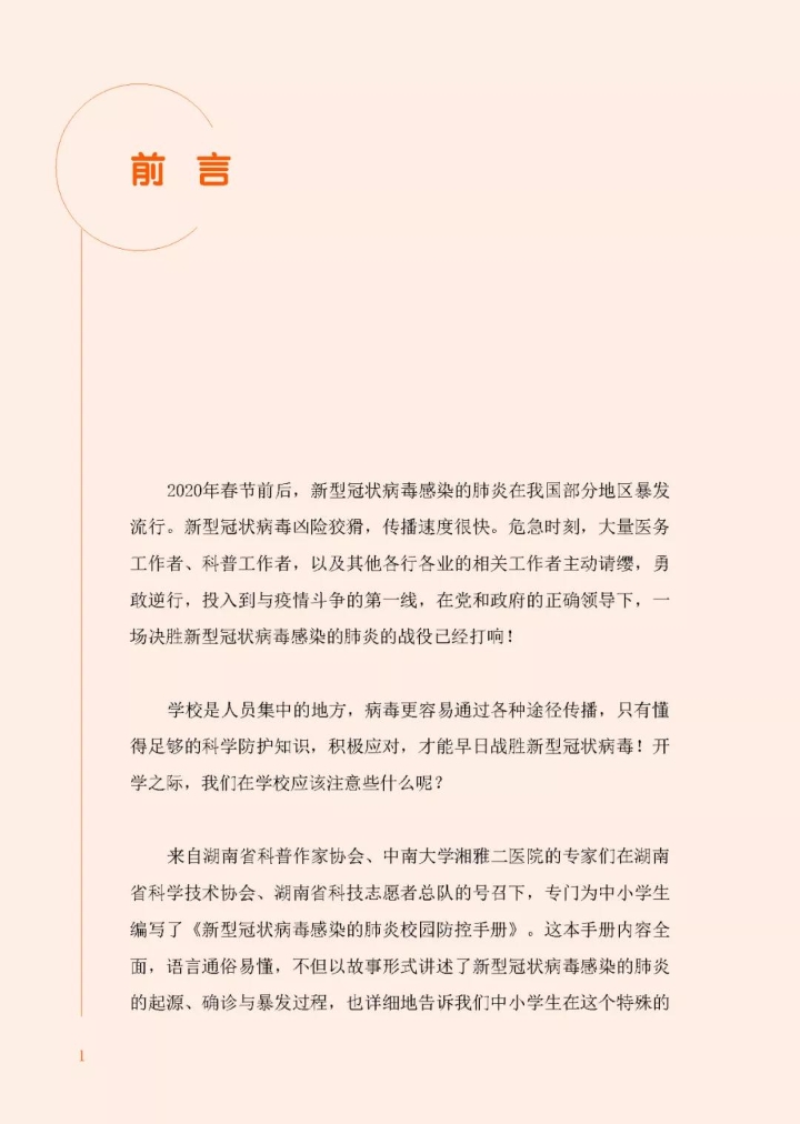 湖南省科协组织编写的国内首本面向校园的新型冠状病毒感染的肺炎防控手册电子版发布