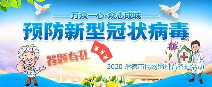 为积极宣传疫情防护科普知识,营造不信谣、不传谣的科学氛围,提高常德市民的自我保护意识和应对疫情的科学能力。常德市科协于2020年2月4日-20日组织开展了quot;新型冠状病毒预防知识quot;专题微信答题活动。活动中,来自全国各地的科粉们纷纷参与答题,累计154530人次参与答题,14999人次中奖,现将“科普答题达人奖”名单予以公布,看看有没有你的名字哦!