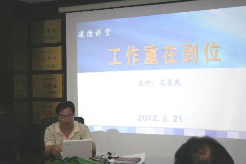 8月21日,市科协开展了以“工作重在到位”为主题的道德讲堂活动。全体机关干部参加,党组书记、主席李守海同志主持。