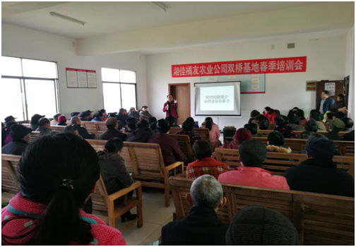 2月10上午,永兴街道科协、农技站联姻湘佳牧业、“橘农之友”合作社在双桥社区开展柑橘基地春季培训,一百多名橘农参会。