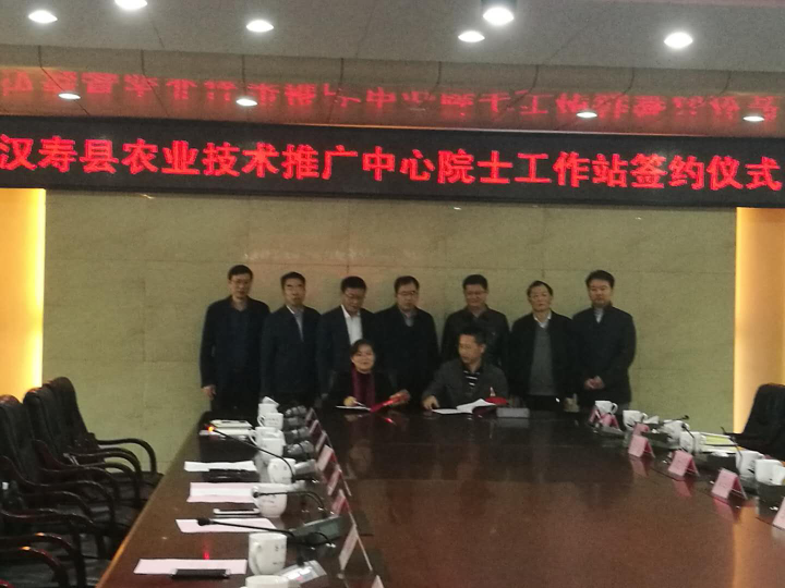 汉寿县农业技术推广中心与湖南省农科院共建院士工作站举行签约仪式 发布时间:2018-03-20 信息来源:汉寿科协 点击次数: 次 【字体:小 大】 3月17日上午,在汉寿县科协牵头下,促成汉寿县农业技术推广中心与湖南省农科院共建院士工作站签约,争取省科协6月份批复挂牌。中国工程院院士、湖南省农科院院长邹学校,湖南省蔬菜研究所所长马艳青,县委书记杨昶,县委副书记、县长车世忠,县领导丁克刚、李功文,县科协主席杨长林等出席签约仪式。 【打印正文】 分享到: