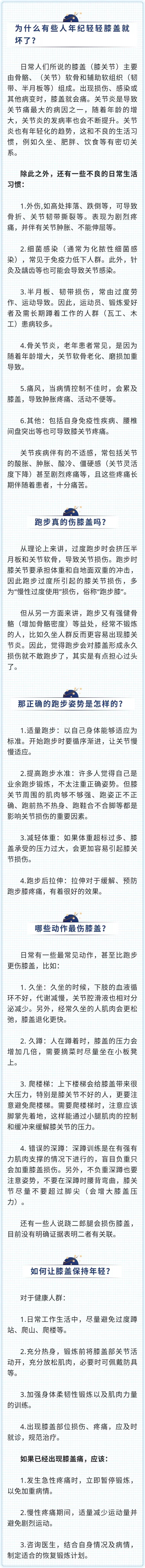 年纪轻轻膝盖就毁了,这件事比跑步更伤膝,还有人天天做︱听科普 发布时间:2019-12-06 信息来源:湖南省科协 点击次数: 次 【字体:小 大】 现在很多人都喜欢跑步但网上有传言跑步多了对膝盖有损伤甚至有人年纪轻轻三四十岁膝盖就坏了 【打印正文】 分享到: