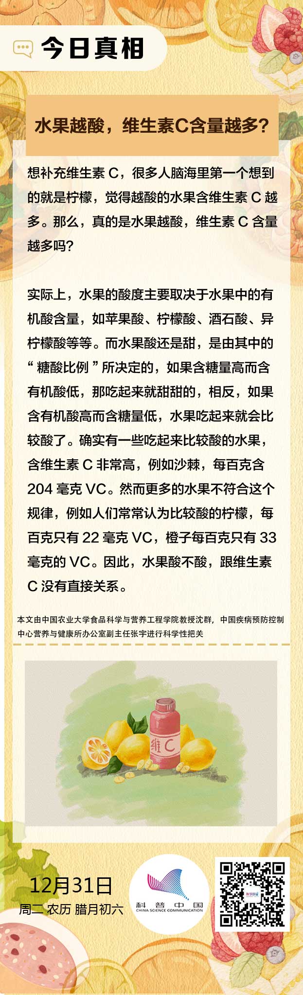 [今日真相]水果越酸,维生素C含量越多