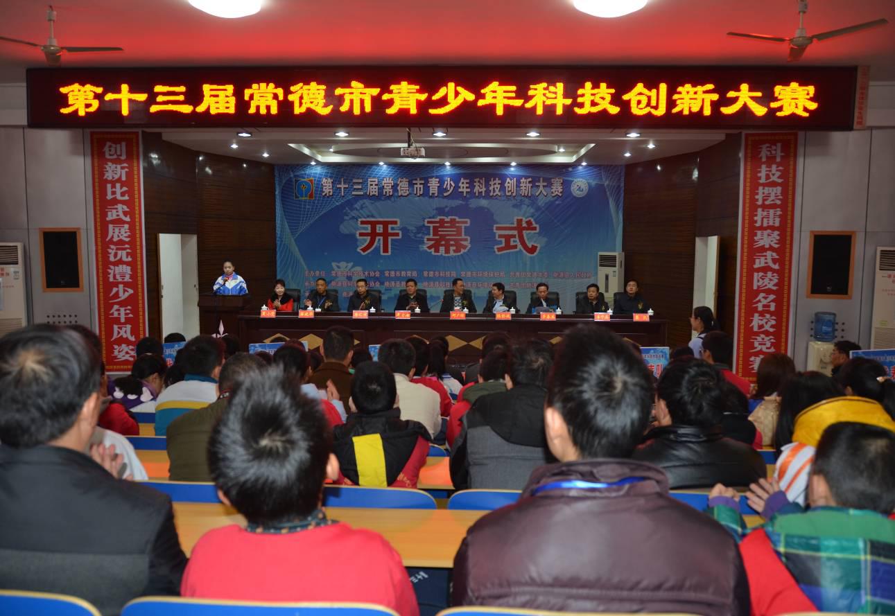 12月12-14日,第十三届常德市青少年科技创新大赛在桃源文昌中学隆重举行,来自全市9个区县(市)的84名学生代表参加了为期2天的展示、问辩和技能测评活动,市科协、市教育局、市科技局、市环保局、团市委、桃源县政府等主办单位领导、桃源文昌中学师生以及来自全市的200多名观摩人员共计300余人参加了开幕仪式。