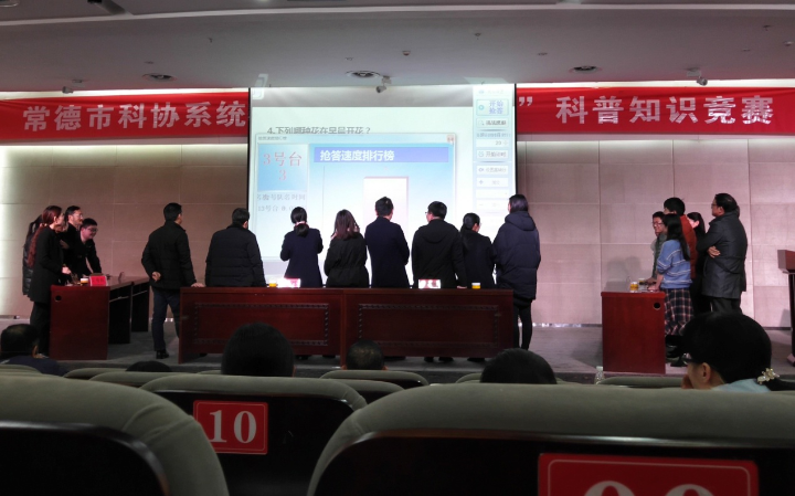 鼎城科协主席率队参加科普知识竞赛 发布时间:2019-02-25 信息来源:鼎城科协 点击次数: 次 【字体:小 大】 1月30日,常德市科协以“不忘初心、牢记使命”为主题的“新时代、新作为”科普知识竞赛活动在常德市科技馆举行。鼎城科协主席杨建新率科普负责人高冠军、科技教师周黎、贺芳蓉参加了本次大赛。比赛分为必答题、抢答题、表演赛三个环节。竞赛围绕地理、生物、物理、化学等科学知识考察了参赛选手们的知识程度、临场应变能力与团队合作精神。经过21组三轮激烈的智慧比拼,鼎城区代表队有幸获得三等奖。竞赛现场参赛选手 【打印正文】 分享到: