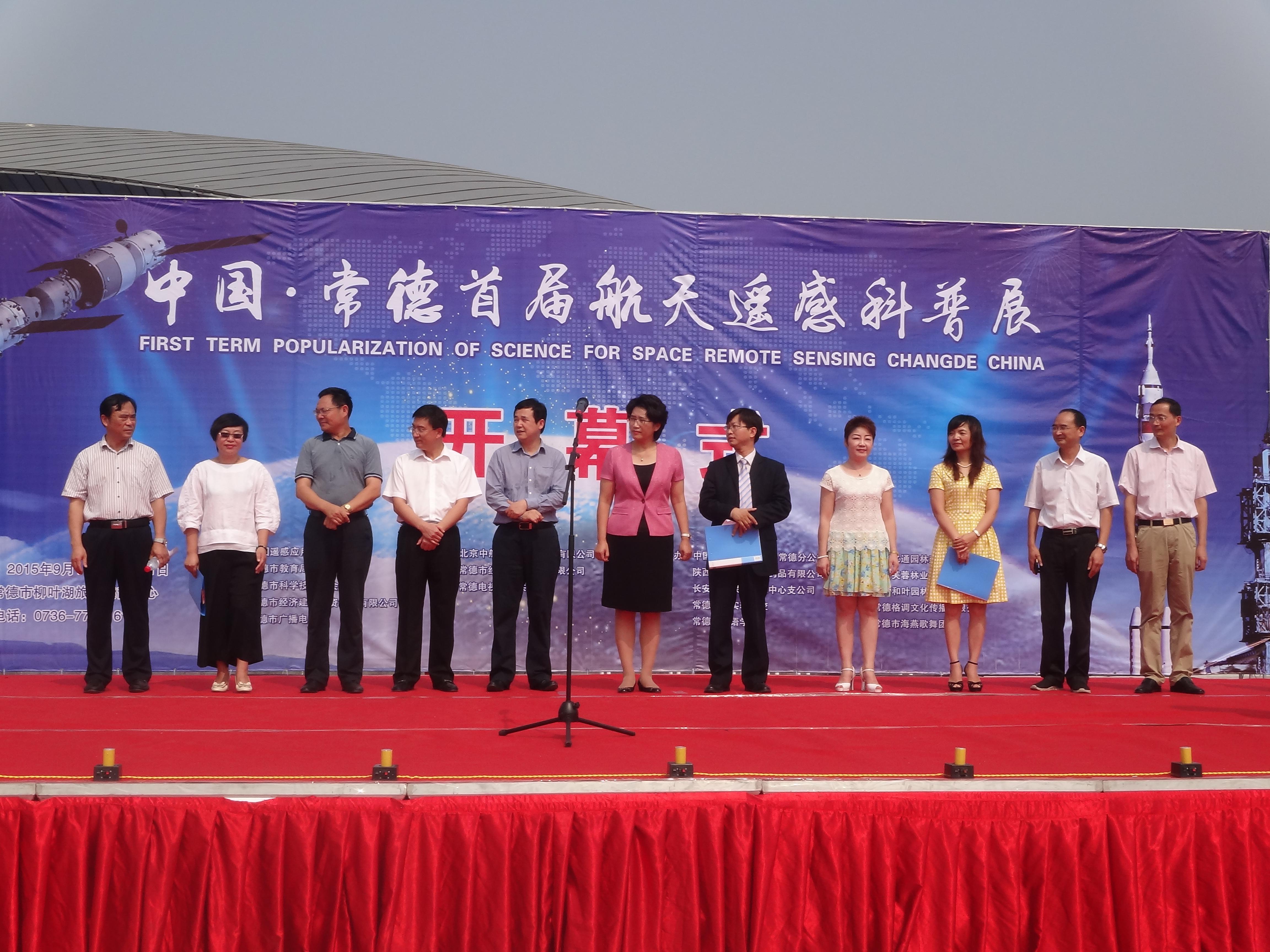 9月1日,常德首届航天遥感科普展在柳叶湖旅游集散中心举办开幕式。市人民政府副市长陈华、中国遥感协会副秘书长卫征、市教育局副局长庹朝君、市科协副主席夏小雯、常德市经投集团董事长刘凡荣等参加了开幕式。