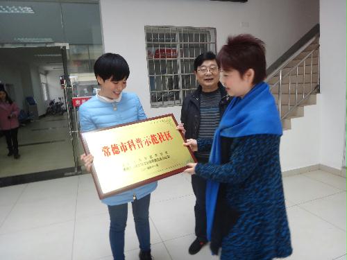 近日,市科协副主席夏小雯带领普及部、科普办部室负责人,向丹阳街道光荣路社区、府坪街道百街口社区、武陵区东升小学等部分市级科普示范社区和市级科普示范学校授牌,赠送电脑、投影仪、相机等科普设备并进行调研。