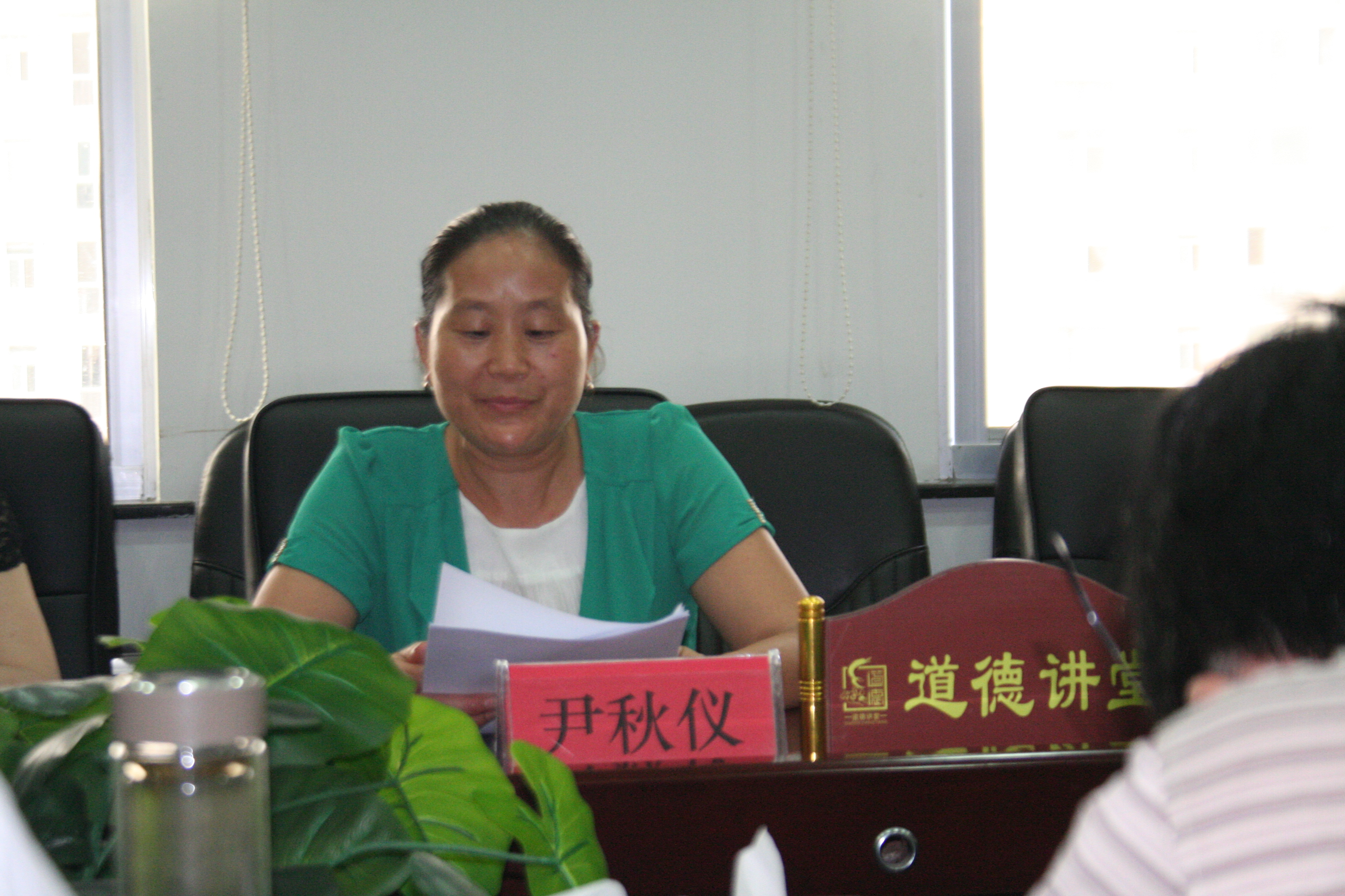 尹秋仪讲述了她几十年孝老爱亲的感人事迹。她用农民质朴的勤劳,用一个妇女固有的贤惠,赢得了家人的信任,获得了社会的赞扬。公公卧床15年,是她的精心护理照料,生命才得以延续。婆婆是个“药罐子”,是她的真诚关爱,生活质量得以保证。多年来,她坚持无偿地照顾社区10多位空巢和孤寡老人,为留守儿童送餐,为困难户募捐,为单亲家庭看孩子,为灾区捐款,爱心从未间断。很多同志都被触动,甚至湿了眼眶。