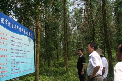 李守海(左二)考察常德市速生丰产林科普示范基地
