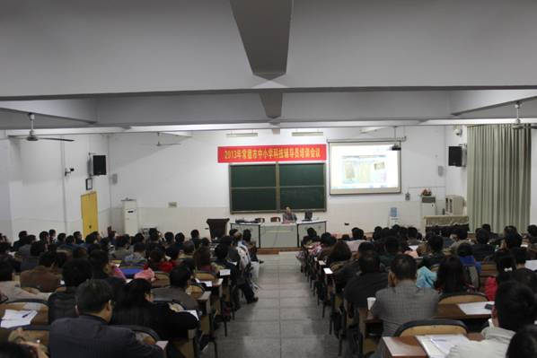10月30日上午,由市科协、市教育局主办,武陵区科协、市教科院、市第十一中学承办的2013年常德市中小学科技辅导员培训会议在市十一中多媒体会议室举行,来自全市中小学的部分科技辅导教师、县市区科协、教育局的分管负责人共200余人参加培训。
