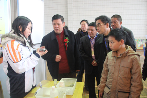 市科协党组书记、主席李守海(左二)陪同市领导参观科技作品展示现场