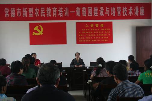 67日,市科协邀请我市知名葡萄专家、市农科所高级农艺师丁华,和市委、市政府驻白鹤山东山村新农村建设示范村工作组在东山村村部联合开展了“常德市新型农民教育培训—葡萄园建设与培管技术讲座”,发放葡萄栽培技术光碟30片,大力推广葡萄种植,在促进“转方式、调结构”、发展高效新型农业方面起到了积极作用。