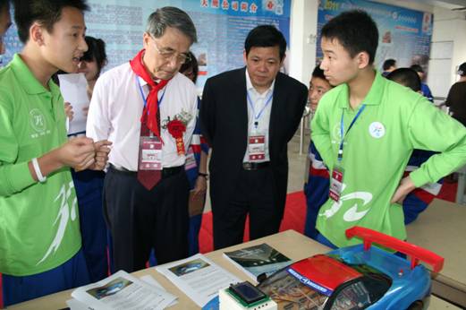 市科协党组书记、主席李守海陪同何继善院士参观学生作品展示