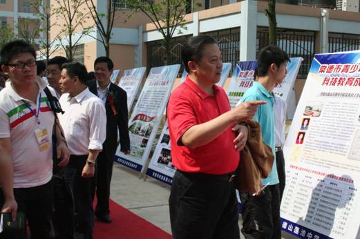 与会领导参观由市科协、市教育局举办的“常德市青少年科技教育成果展示”