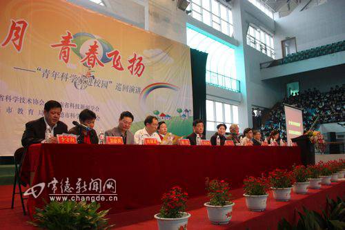 5月15日上午8时,2010年“激情五月·青春飞扬——青年科学家进校园”巡回演讲活动启动式在常德市第一中学举行。省科协党组成员、副主席刘秋惠,副市长朱晓平出席启动式。