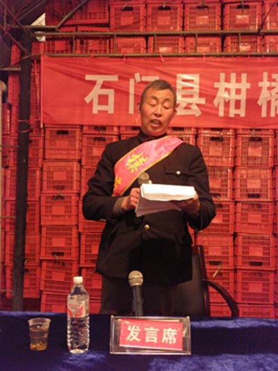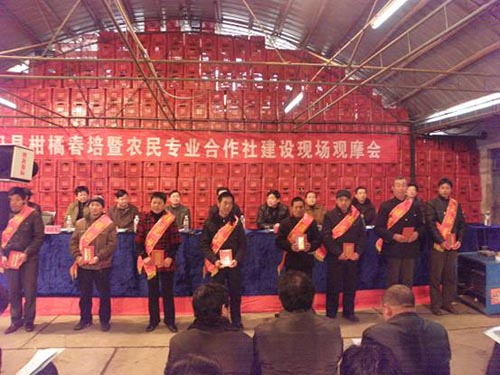 为化解15个柑橘主产乡镇(场)、220个柑橘专业村、44万亩橘园、11万种橘农户、30万橘农的千家万户个体化小生产与千变万化社会化大市场的矛盾,提高橘农的组织化程度,石门县农业局、县科协柑橘办、经管局、工商局等相关部门大力鼓励支持柑橘专业村、加工企业、个体营销大户组建柑橘专业合作社。3年来,柑橘专业合作社如雨后春笋般兴起,共登记注册22家,加上金湘源、盛节节高、福慧达、敦成、湘冠、大唐、三圣生态7家大型柑橘贸易公司和49家柑橘果品打蜡厂的合作加盟,统一技术指导、统一农资供应、统一质量标准、统一品牌营销、统一培管、统一结算的管理模式,一下子将“一盘散沙”的单个农户单片橘园“抱成一团”,显示出旺盛的生命力。二都合作社2009年加工销售果品1.4万吨,为317名社员办起柑橘技术学校,二次分红达8.6万元,在县城经济开发区征地15亩,计划投资1000万元新建“万吨出口柑橘加工项目”。