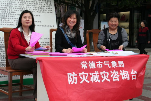 常德市气象学会按照省气象局和市科协关于开展应急管理法律法规和应急知识科普宣传周活动的通知精神,5月12日上午,在我国首个“防灾减灾日”活动中,市气象学会组织学会业务骨干和应急办工作人员到市步行街人员密集地设立“防灾减灾”咨询台,开展“关注灾害、关爱生命”为主题的气象应急科普宣传活动,设立《气象灾害应急防护知识》和《防雷小知识》宣传盾牌3块,共向市民发放《湖南省应急预警信号及防护指引》气象科普书200本,防雷和气象灾害《大风》、《暴雨》、《高温》、《台风》等宣传单共计3000份,内容十分丰富,同时,气象业务人员现场认真解答了市民提出的一些疑难问题,大大增强了社会公众防灾减灾意识。