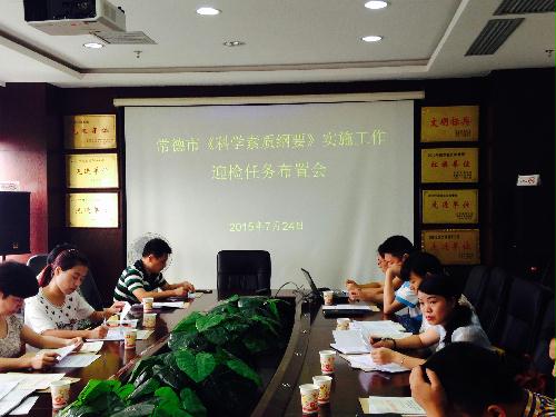 根据《湖南省全民科学素质纲要实施工作办公室关于开展lt;科学素质纲要gt;实施工作督促检查的通知》要求,省纲要办计划8月上旬来常督导纲要实施工作。会上,王宏武同志介绍了省纲要办此次督导的内容、督导形式和工作程序,并进行了工作任务的分解,明确了各个单位的责任,强调了工作时限。