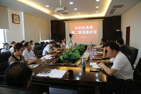 7月27日,常德市科协系统第二期道德讲堂在会议室开讲,本期道德讲堂以我国“杰出科技人才”黄大年为学习模范,以社会主义核心价值观中的关键词“爱国”为主题,通过“做反省、唱歌曲、学模范、诵经典、发善心、送吉祥”六个环节引导大家学习黄大年“心有大我、至诚报国”的爱国情怀。本期道德讲堂由办公室负责人高皓明主持,市科协全体干部及科技馆相关负责人参加了活动。