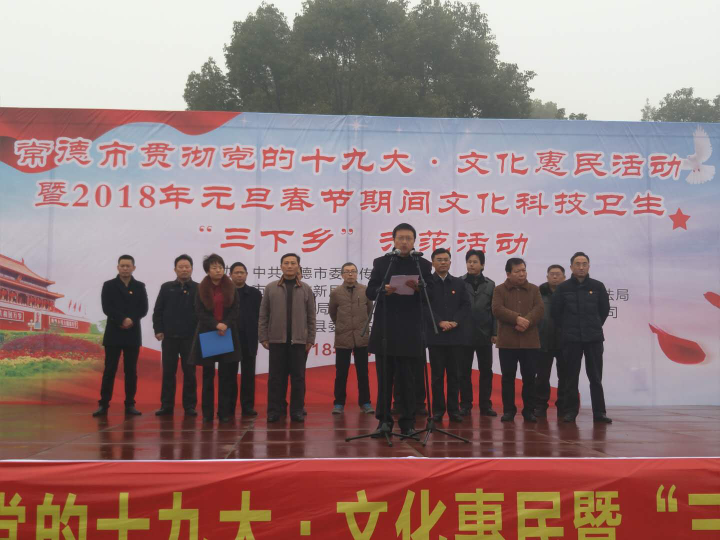 常德市贯彻党的十九大·文化惠民活动暨2018年文化科技卫生“三下乡”示范活动启动仪式1月17日在临澧县安福镇举行,市科协参加启动仪式。