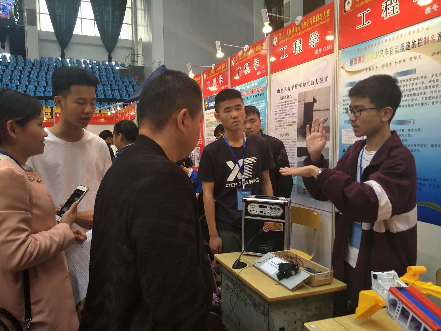 此次大赛共收到湖南省14个市州推荐的937项作品,经资格审查和初评,共有244项作品进入终评展示。创意满满的作品吸引了众人驻足观看,来自常德市芷兰实验学校的杜杭泽同学说“参加这次大赛,收获真是太多了,收集了这么多意见,我们有信心把这个现有的装置改进得更加完美。”