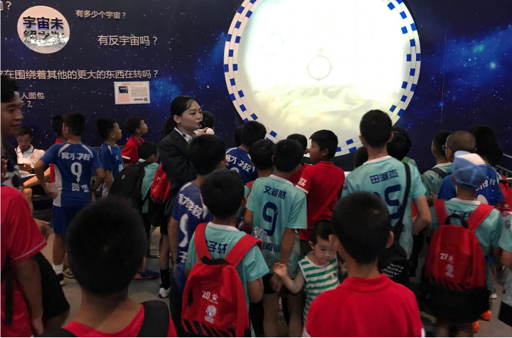 8月14日上午,200多名来自长沙、湘潭等地参加2019年全国青少年体育冬夏令营(湖南站)常德市青少年足球邀请赛的参赛队员前往常德市科学技术馆参观,体验科学的魅力。